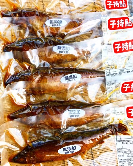 こぶしの里の秘伝のたれ その名も神汁 その神汁でしっかり6時間煮て頭も骨も尻尾も全部食べれる子持鮎の甘露煮 鮎は国産養殖鮎を使用 一尾ずつ真空パック包装してあり常温で半年保存が可能 急なお客さんが来た時のおもてなしにも使えますよ。 名称※こぶしの里秘伝の神汁で煮た子持鮎の甘露煮10尾 NEW 内容子持鮎 10尾 サイズ 15cm 80g 原材料子持鮎(国産15cm 80g ) ・・・