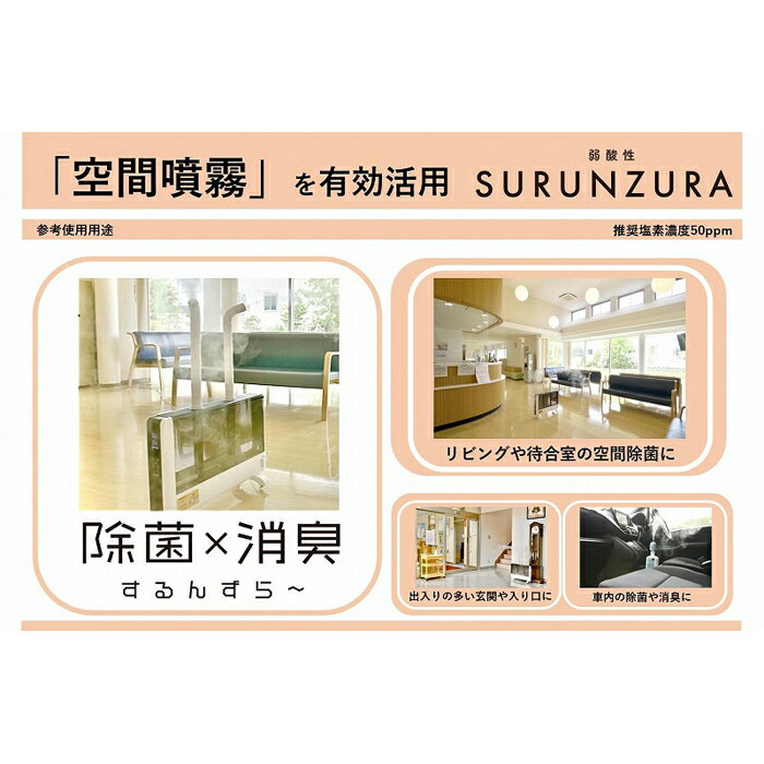 強力な殺菌・ウイルスの不活化、強力な消臭効果を発揮しながらも肌のph値に近い弱酸性の為、人体・環境に安全です。用途によって希釈してご使用下さい。 【例】 嘔吐物・排泄物処理後の除菌 200ppm 強いニオイの消臭 200ppm キッチン廻りの除菌 100ppm 手指の除菌 50ppm 市販の噴霧器に使用可 50〜100ppm 名称 【弱酸性次亜塩素酸ナトリウム水溶液】除菌・消臭 濃度(100ppm)BIBケース 20Lタンク (コック付き) 内容量・サイズ等 【弱酸性次亜塩素酸ナトリウム水溶液】 除菌・消臭SURUNZURA 濃度(100ppm)20L×1箱 【産地名】 山梨県富士河口湖町河口 【原材料】 ナトリウム水溶液(食品添加物殺菌剤) 希塩酸(食品添加物殺菌剤) 水 使用期限 製造日より6ヶ月(開封後3か月)※直射日光や高温多湿は避けて保管して下さい。(目安15℃) ・ふるさと納税よくある質問はこちら ・寄付申込みのキャンセル、返礼品の変更・返品はできません。あらかじめご了承ください。【弱酸性次亜塩素酸ナトリウム水溶液】除菌・消臭 濃度(100ppm)BIBケース 20Lタンク (コック付き) 受領証明書:入金確認後、注文内容確認画面の【注文者情報】に記載の住所へお礼の品とは別に40日以内に発送いたします。 ワンストップ特例申請書:寄付申込みの際に希望された方のみ受領証