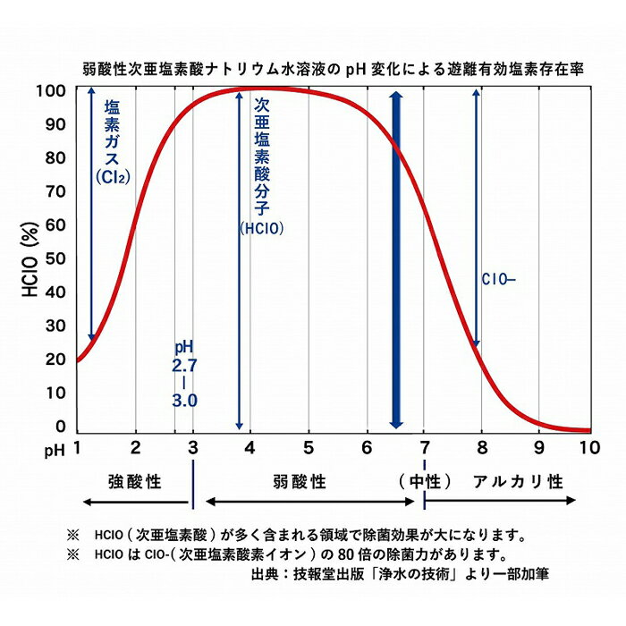 強力な殺菌・ウイルスの不活化、強力な消臭効果を発揮しながらも肌のph値に近い弱酸性の為、人体・環境に安全です。用途によって希釈してご使用下さい。 【例】 嘔吐物・排泄物処理後の除菌 200ppm 強いニオイの消臭 200ppm キッチン廻りの除菌 100ppm 手指の除菌 50ppm 市販の噴霧器に使用可 50〜100ppm 名称 【弱酸性次亜塩素酸ナトリウム水溶液】除菌・消臭・・・