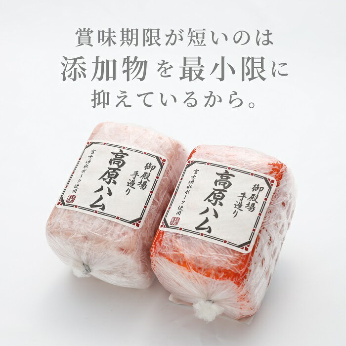 ・ふるさと納税よくある質問はこちら ・寄付申込みのキャンセル、返礼品の変更・返品はできません。あらかじめご了承ください。 ・ご要望を備考に記載頂いてもこちらでは対応いたしかねますので、何卒ご了承くださいませ。 ・寄付回数の制限は設けておりません。寄付をいただく度にお届けいたします。 品名 商品概要 富士山麓の澄んだ空気と清らかな地下水。豚の飼育にとって理想的な環境の中で、富士湧水ポークは育てられています。徹底された厳しい豚種管理のもと、デュロック系と大ヨーク系を配合。またイースト菌を使用した食品をいち早く導入するなど、研究を重ね、常に最高の条件と時間をかけて作り上げました。甘みのある脂質、肉のしまり、柔らかい肉質そして旨味とコクはまさに絶品です。 富士湧水ポークを使用し、添加物と塩分を抑えて造った極上手作りハムです。 ■事業者情報 事業者名:MEATPRO鈴木 連絡先:0550-84-2911 営業時間:9:00〜19:00 定休日:火曜日 原材料 【高原ハム】豚肉(国産)、食塩、糖類(水飴、ぶどう糖)、蛋白加水分解物、リン酸塩(Na,K)、調味料(アミノ酸等)、酸化防止剤(ビタミンC)、発色剤(硫酸K、亜硫酸Na)、くん液、香辛料抽出物(原材料の一部に大豆・牛肉を含む) 【ボロニアソーセージ】豚肉(国産)、食塩、糖類(水飴、ぶどう糖)、蛋白加水分解物、リン酸塩(Na,K)、調味料