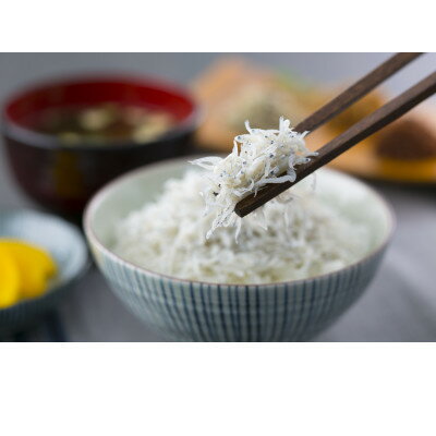 愛知県篠島に水揚げされたしらすと塩のみを使用し、塩分約2%のうす塩味で仕上げました。