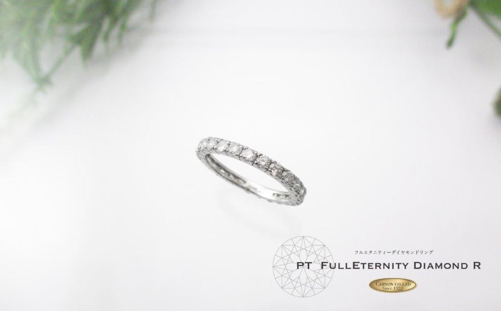 「永遠」を意味するエタニティーリングです。約2.2mmの幅に一周敷き詰められたメレーダイヤモンドは、繊細ながらもその輝きを失うことなく、気品と華やかさを演出します。