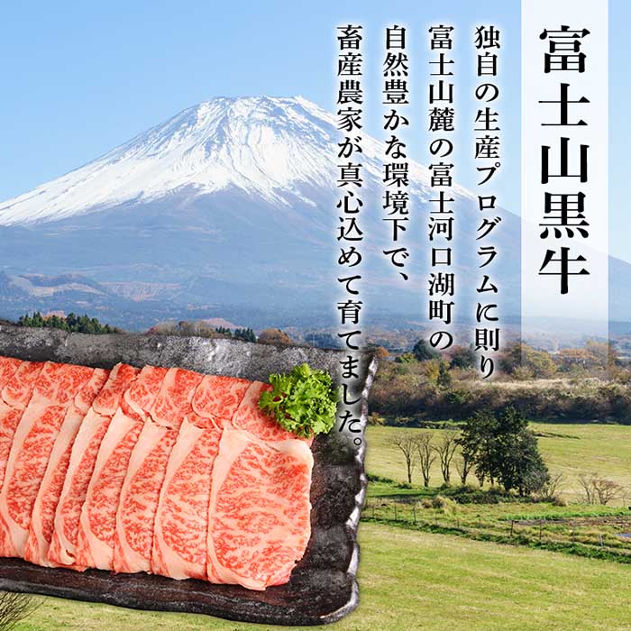 富士山黒牛(ふじやまくろうし)は、独自の生産プログラムに則り富士山麓の富士河口湖町の自然豊かな環境下で、畜産農家が真心込めて育てました。独自に配合した餌を与えることで、豊かな風味と柔らかさ、それにジューシーさを兼ね備えた牛肉に仕上げております。富士山黒牛(ふじやまくろうし)のすき焼きを是非お召し上がりください!※お届けに2〜3週間程度かかる場合がございます。 品名 山梨県産富士・・・