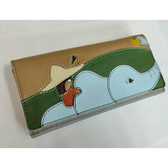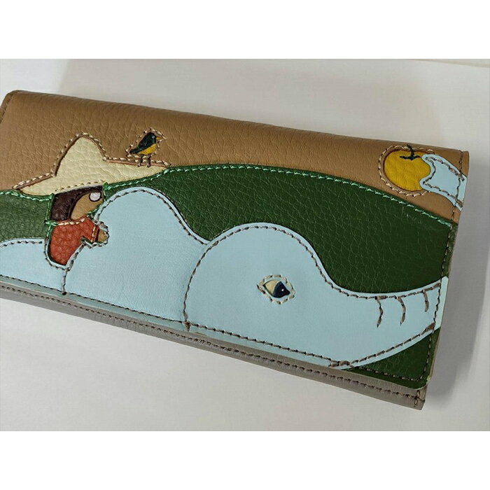 地元富士河口湖町大石で、使い手の心を想いながら、日々鞄を造っている 「鞄工房 香」のレザーのオリジナル長財布です。一つ一つ丁寧に手造りされています。 おしゃれで、軽くて、柔らかく使いやすい長財布です。 象に乗った旅人の帽子に小鳥が・・・物語ができそうなカワイイ絵柄ですね。 飽きずに長く使えること間違いなし。 温かみのある、使うほどに味の出るお財布かと思います。 全てが手作業の為・・・