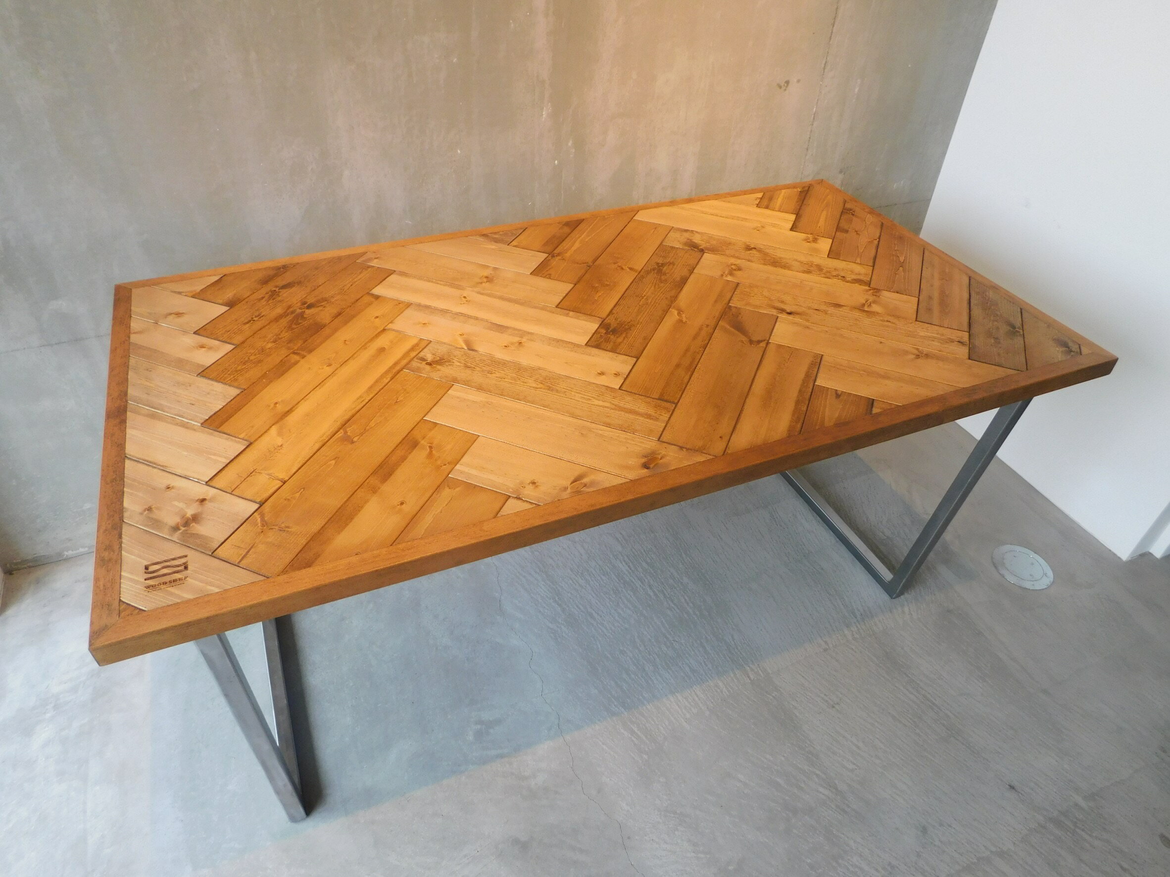 【ふるさと納税】 木製 家具 ダイニングテーブル ヘリンボーン ナチュラル アイアン お洒落 ヴィンテージ インダストリアル 富士山 インテリア 木工 WOOD SHEF・・・