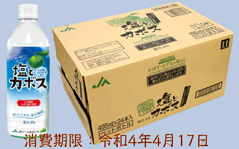 大分県産カボス果汁となずなの塩使用(食塩全体の53%)したジュースです。 塩が入っていますので、スポーツドリンクとして暑い日の水分補給などに最適です。 また、凍らせてもおいしくお召し上がりいただけます。 今回は賞味期限が近いため訳ありでご紹介しています。早めにお召し上がり下さい。 ※消費期限:令和4年4月17日 名称 【ふるさと納税】【訳あり】塩とカボス24本(1ケース) 内容量 塩とカボス1ケース(495ml✕24本) 消費期限 令和4年4月17日まで 発送期日 令和4年3月15日まで 配送方法 常温 提供者 JA全農おおいた 営農開発部直販開発課 ・ふるさと納税よくある質問はこちら・寄附申込みのキャンセル、返礼品の変更・返品はできません。あらかじめご了承ください。【ふるさと納税】【訳あり】塩とカボス24本(1ケース) 入金確認後、注文内容確認画面の【注文者情報】に記載の住所にお送りいたします。発送の時期は、寄附確認後速やかに、お礼の特産品とは別にお送りいたします。 ●ワンストップ特例申請について詳しくはこちら 詳細にて適用条件・注意事項をご確認のうえ、申請をご希望される方は寄附お申し込み時に「3.【ワンストップ特例申請制度について】」にて「申請書を要望する」を選択してください。