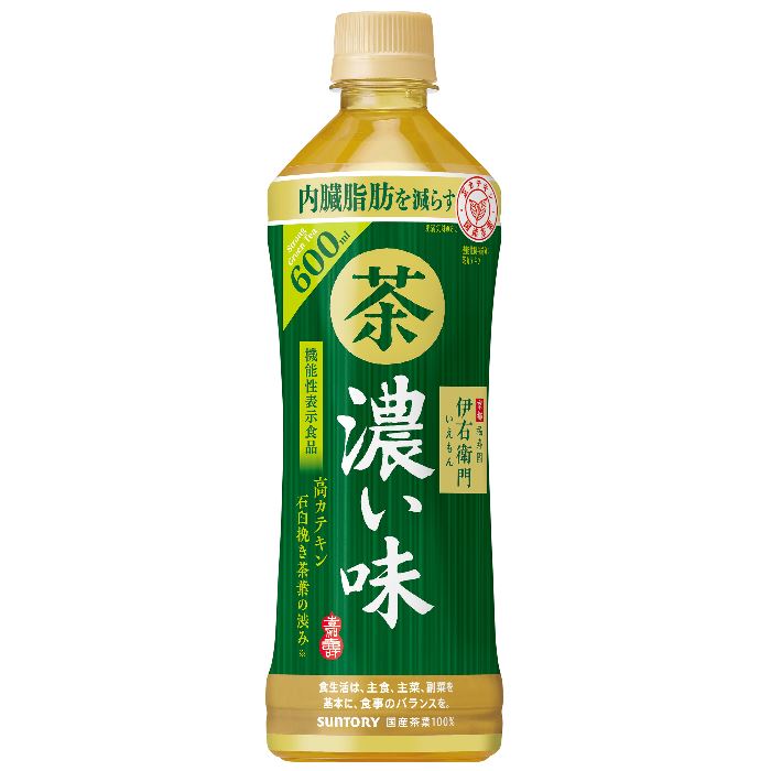 茶カテキンの力で内臓脂肪を減らす機能性表示食品の緑茶です。 > 1ケースはこちら > 2ケースはこちら > その他サントリー製品はこちら 返礼品説明名称サントリー 伊右衛門 濃い味 600ml 24本(1ケース)商品詳細茶カテキンの力で内臓脂肪を減らす機能性表示食品の緑茶です。 本商品専用に加工した福寿園茶匠厳選の渋み茶葉をたっぷりと高温抽出することにより渋みを最大化しました。同時に、“高カテキン石臼挽き茶葉(※)”を使用し、渋みの強さ・濃さはありつつも、後に引かない独自の渋みが特長です。 ※当社主要緑茶飲料比原材料緑茶(国産)/ビタミンC成分・特性エネルギー(1200mlあたり)0kcal たんぱく質(1200mlあたり)0g 脂質(1200mlあたり)0g 炭水化物(1200mlあたり)0g 食塩相当量(1200mlあたり)0.29g 茶カテキン(1200mlあたり)540mg カフェイン(100mlあたり)約20mg カリウム(100mlあたり)約10mg リン(100mlあたり)10mg未満容量600ml×24本(1ケース)賞味期限9ヶ月保存方法高温多湿、直射日光を避け涼しい所に保管してください。製造者サントリーホールディングス株式会社大阪市北区堂島浜2-1-40提供事業者株式会社イズミック愛知県名古屋市中区栄一丁目7番34号その他ラベルやキャップシール等の色、デザインは変