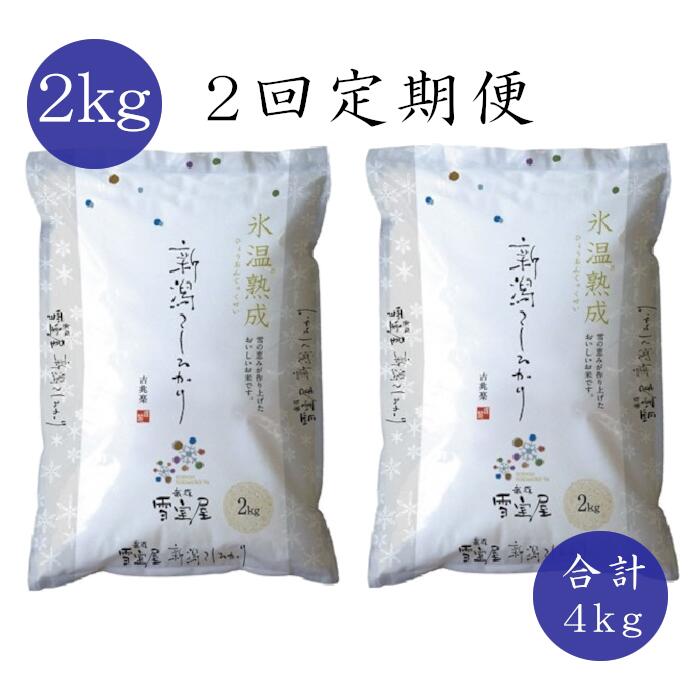 ≪2回定期便≫阿賀野市産 コシヒカリ (雪室米低温熟成) 2kg 全国百貨店でおなじみの越後雪室屋が阿賀野市産で登場。 新米収穫後の鮮度をキープするため、玄米のまま雪室で保管。 約700トンもの天然雪の冷気で室温5℃以下・湿度80%を一年中保ち、新米の美味しさを守ります。さらに、凍る直前の温度=マイナス2℃で一定期間貯蔵する氷温®熟成加工で、お米の細胞は凍ず成分に質的変化が生じ、旨味や甘味、モチモチ感を引き出し、良い食味のお米になります。 ひと月に1回、2回連続でお届けします。 内容 コシヒカリ2kg(1袋)×2回(合計4kg) 名称 精米 産地 新潟県(阿賀野市) 品種 コシヒカリ 産年 令和3年産 使用割合 単一原料米 精米年月日 別途商品に記載 賞味期限 精米日から約1か月 配送 常温※ひと月に1回、2回連続でお届け 提供事業者 株式会社WIN-WIN ・ふるさと納税よくある質問はこちらです ・寄附申込みのキャンセル、寄附者名義の変更、返礼品の変更・返品はできません。 ・寄附者の都合で返礼品がお届け出来なかった場合、返礼品等の再送はいたしません。あらかじめご了承ください。入金確認後、注文内容確認画面の【注文者情報】に記載の住所にお送りいたします。 発送の時期は、寄附入金確認後2週間以内を目途に、お礼の特産品とは別にお送りいたします。