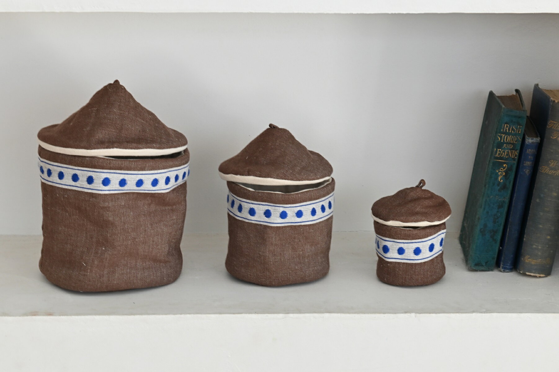 ALDIN製のリネンクロスで作られた布製のキャニスター大・中・小3個セット