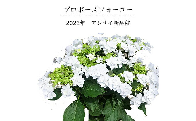 内容2022年に提供開始、新品種のアジサイ 「プロポーズフォーユー」×1鉢 鉢のサイズ:直径約15cm事業者マスダグリーン株式会社お届け時期2022年5月1日〜7日備考※画像は開花イメージです。個体差や季節により、画像とは姿、形が異なります。(開花時期以外は、花は咲いていないものとお考えください) ※植物ですので到着後はすぐに開封してください。 ※サイズ表記、お礼品画像は平均的・・・
