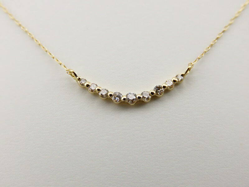 スマイル形に弧を描くラインダイヤモンドネックレスです。