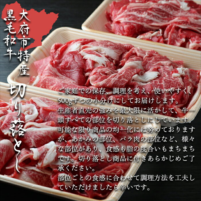 ・ふるさと納税よくある質問はこちら ・寄付申込みのキャンセル、返礼品の変更・返品はできません。あらかじめご了承ください。 ・ご要望を備考に記載頂いてもこちらでは対応いたしかねますので、何卒ご了承くださいませ。 ・寄付回数の制限は設けておりません。寄付をいただく度にお届けいたします。 名称 大府市特産黒毛和牛「下村牛」切り落とし 1.5kg 商品概要 【数量限定商品】 「即」発送可能な商品を確保できました。 数量限定ですのでお急ぎください。 入金確認後、1週間〜2週間で発送いたします。 長引くコロナ禍の影響で、「おうち」時間が増大中!近年の時代の流れに逆行し、中食の時間が増えてきています。私どもが責任を持って、手塩にかけて育て上げた、大府市特産の黒毛和牛「下村牛」を「おうちごはん」応援企画として、期間限定で、大放出します。繁殖・肥育・販売と一貫して行う、生産者直営の店舗だから、実現可能です。年間、約600頭、グループ牧場を加えると1,000頭を超える牛を出荷する、下村畜産の圧倒的物量。牛丼、野菜炒め、肉じゃがなど、何にでも便利に使える切り落とし肉を期間限定で大増量中。もちろん、生産者の名誉にかけて、全量、本物の黒毛和牛です。500g×3パックでお届けしますので、使い勝手は抜群。数量に限界がありますので、毎月数量限定で大放出。納期に余裕を持ってご注文ください。配送中の品質保持のため、冷