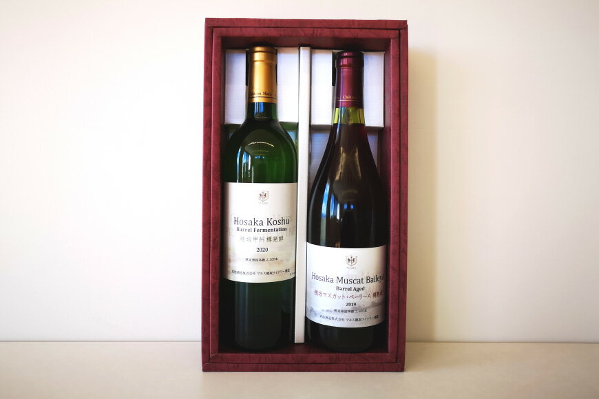 マルスの技術に裏付けられたプレステージ・クラスの逸品をお届けします。 【シャトーマルス穂坂甲州樽発酵】 穂坂町産甲州種のフリーラン果汁を、樽で発酵・熟成させることにより、優しい樽の香りが特長の辛口白ワインに仕上がりました。 適温は12~14℃で、料理との相性として和食では豚しゃぶ、洋食では白身魚・貝類のお刺身や焼き物など和洋中様々な料理との相性を楽しめる味わいです。 【シャトーマルス穂坂マスカット・ベーリーA樽熟成 ミディアムボディ】 穂坂町産マスカット・ベーリーA種で造ったワインを樽で長期間熟成させることで、凝縮感のあるベリーの香りと樽香を感じ、軽すぎず重すぎない中口の辛口赤ワインに仕上がりました。 適温は16~18℃で、肉料理全般と相性が良く、果実味に富んだ凝縮感のあるやわらかいベリー系フレーバーと樽熟成によるボリューム感がバランスよくまとまった味わいです。 ●マルス穂坂ワイナリーとは? 四季豊かな日本風土を活かしたワイン造りを求め、鹿児島に本社を持つ本坊酒造が、洋酒生産拠点として山梨県笛吹市石和町にマルス山梨ワイナリーを設立したのが1960年。 さらなる品質向上を目指し、2017年に山梨県韮崎市穂坂町に醸造拠点として【マルス穂坂ワイナリー】を開設しました。 世界に通じるワインを造るために、高品質醸造用葡萄の産地である韮崎市穂坂町で、新たなワイン造りに挑んでいます。 ●マルス穂