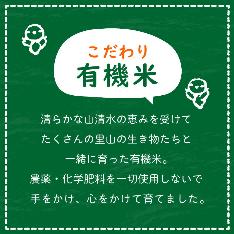 農水省の安心・安全のお墨付きである有機JAS認証米。 素朴な風味とさわやかな甘みが特徴です。 ※画像はイメージです。 ※返礼品出荷時「出荷のお知らせ」メールをお送りいたします。 ※長期ご不在にされる場合はお申し込み時【備考欄】に、 「不在期間〇〇/〇〇〜〇〇/〇〇」とご入力ください。 ※ご注文殺到時、お届けに時間がかかる場合がございます。 ※越前町内への返礼品発送は対応しており・・・