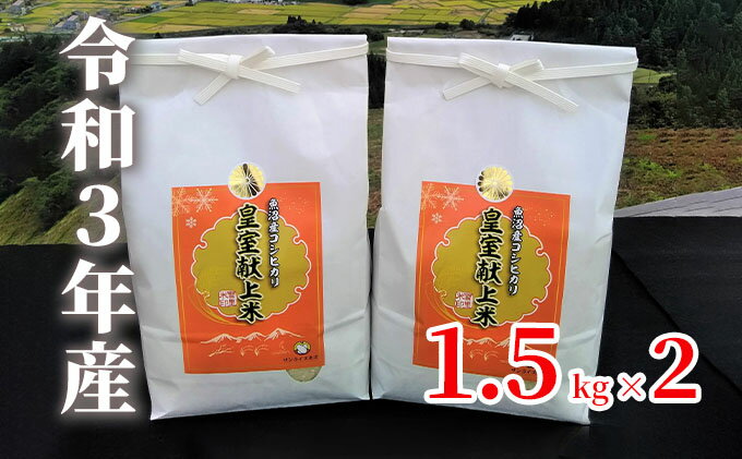 【ふるさと納税】【令和3年産】皇室献上米 令和2年度献上!厳選2mmの大粒米です!精米 3kg(1.5kg×2) 【お米・コシヒカリ・新潟県産】