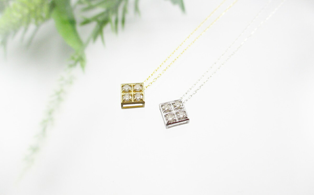 ダイヤがさりげなく輝く、人気のプチタイプのスクエアペンダント