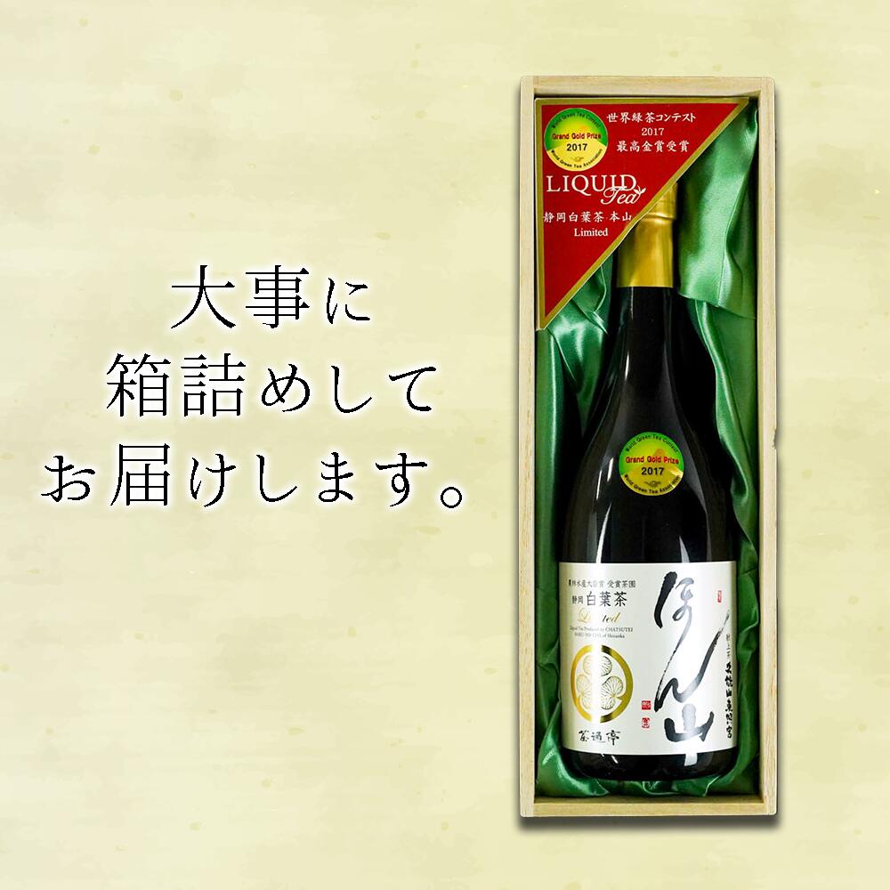 返礼品説明 名称 【ふるさと納税】Liquid Tea 献上茶 静岡白葉茶 ほん山 Limited 内容量 Liquid Tea 献上茶 静岡白葉茶 ほん山 Limited:720mL 最終加工地 静岡県 養殖・解凍の別 記載事項特になし 消費期限 冷蔵90日 開封後はお早めにお召し上がりください。 保存方法 冷蔵 加工業者名 株式会社静岡茶通亭 返礼品説明 世界緑茶コンテスト・・・