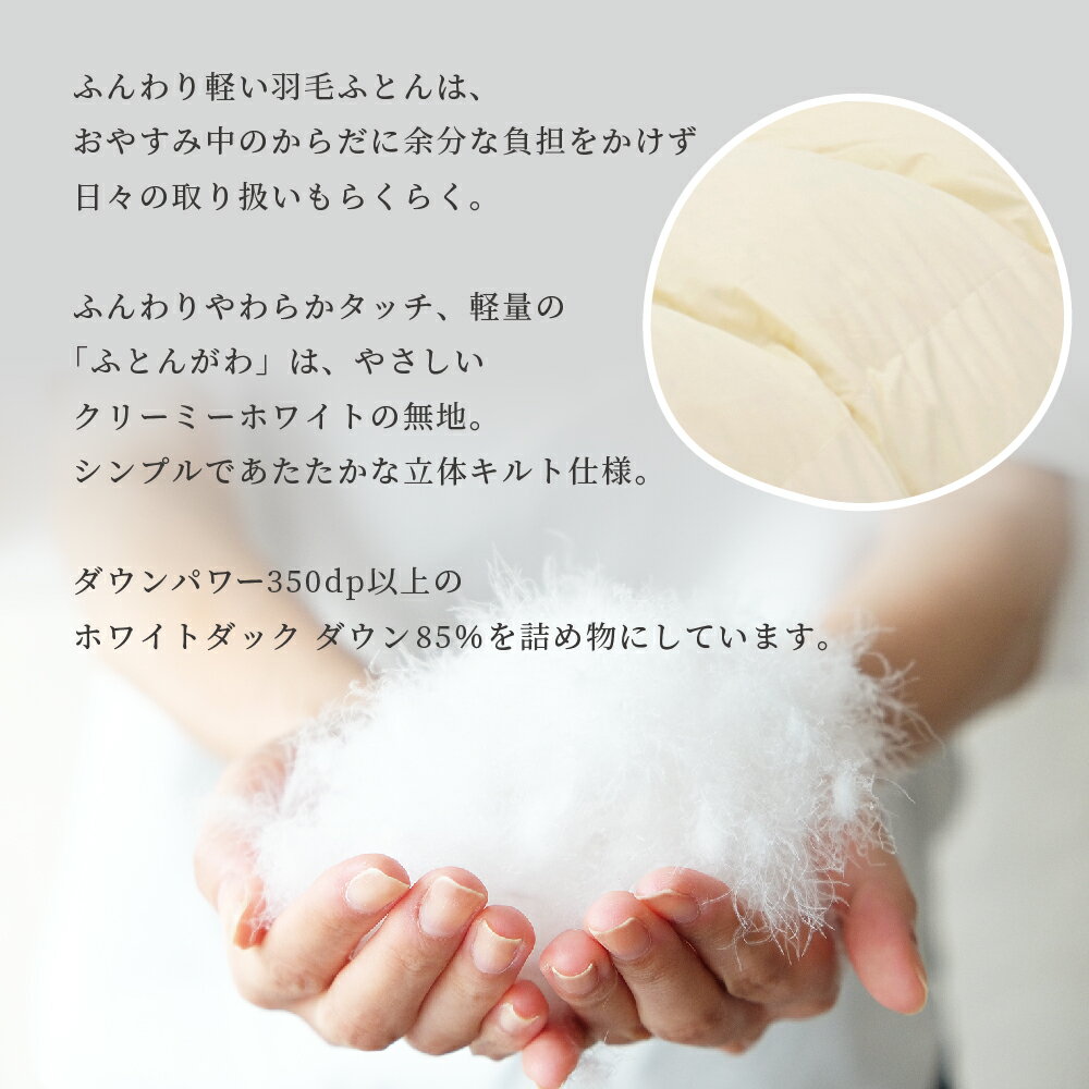 ・ふるさと納税よくある質問はこちら ・寄付申込みのキャンセル、返礼品の変更・返品はできません。あらかじめご了承ください。 ・ご要望を備考に記載頂いてもこちらでは対応いたしかねますので、何卒ご了承くださいませ。 ・寄付回数の制限は設けておりません。寄付をいただく度にお届けいたします。 品名 クイーン【GuuG】羽毛合掛けふとん|ホワイトダック ダウン85% 商品概要 シンプルな無地の合掛け羽毛ふとん、クイーンサイズです。 「合掛けふとん」は、掛け(本掛け)ふとんに比べ、羽毛の量を少なめに調整していますので、空調完備のお住まいや密閉性の高いお住まい、また春先や秋口、季節の変わり目のご使用がおすすめです。 詰め物の羽毛はホワイトダック ダウン85%、ダウンパワー350dp以上、羽毛品質はエクセルゴールドラベル付き[四つ星]クラス。 軽量の生地は、ふとんカバーに透けない、やさしいクリーミーホワイトの無地。ふんわりやわらかな起毛を施し、高さのある立体キルトに仕上げました。 GuuGは山梨県都留市、富士新幸のメーカーブランド。シンプル&プチ・リュクスなGuuGの羽毛ふとんで、心地よい眠りとさわやかなお目覚めを。 ~ 羽毛ふとんについて ~ 羽毛ふとんは、たっぷりと空気を含みあたたかく、軽く、からだに余分な負担をかけず、日々の取り扱いもらくらく。 羽毛が持つ天然の作用で、湿気を吸収して発散するの