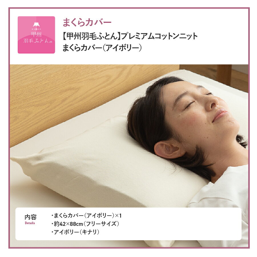 【ふるさと納税】 プレミアムコットンニット まくらカバー アイボリー 寝具 日用品 オールシーズン 【甲州羽毛ふとん】