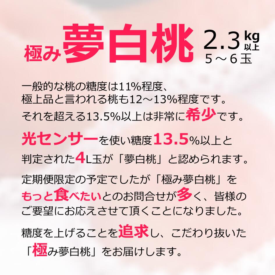 【ふるさと納税】【数量超限定】≪極み≫夢白桃 2.3kg以上(5〜6個)光センサー使用 糖度13.5%以上 朝摘み 産地直送 先行予約 桃 もも モモ 高級 フルーツ 山梨 笛吹市 一宮 もも ギフト 人気・・・