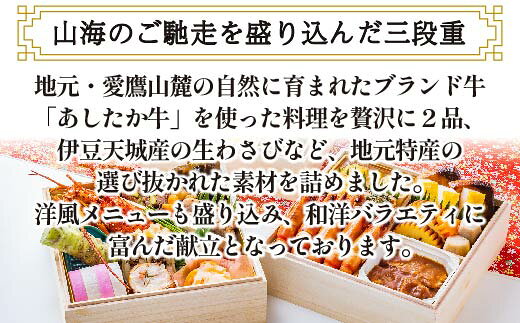 【ふるさと納税】 2023年 おせち料理三段重 4~5人前 あしたか牛 伊勢海老など