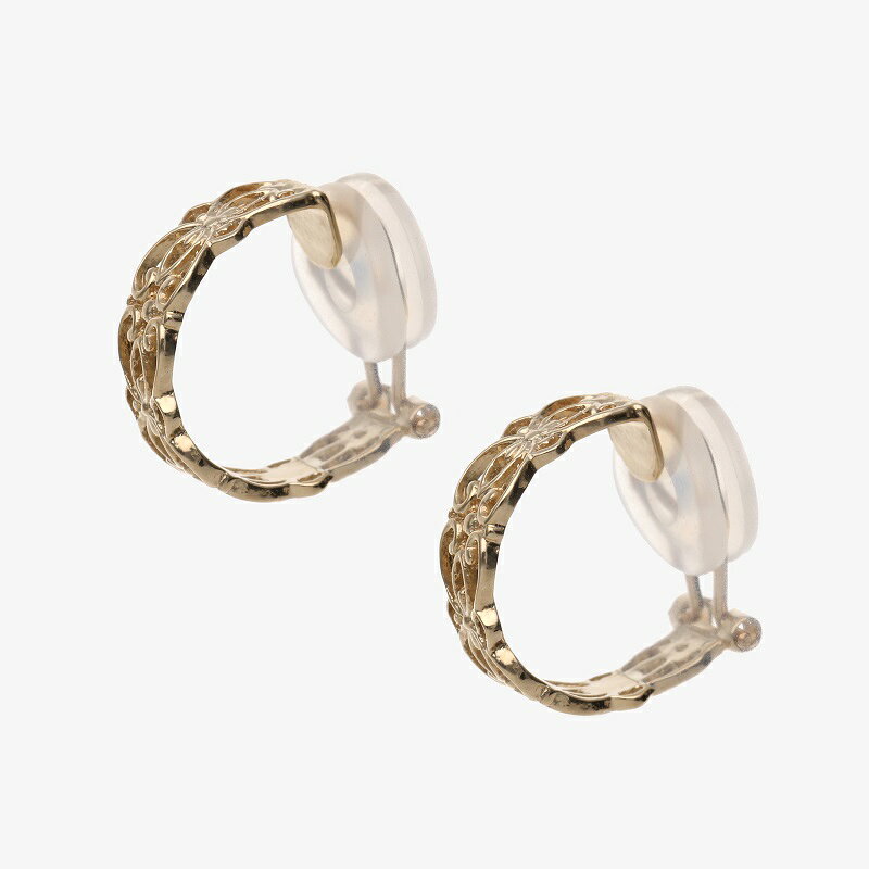 (株)山宝は女性スタッフだけで運営している ジュエリー業界では少ない会社です。 女性が身に着けて「美しく輝くジュエリー」だからこそ女性ならではの気配りで、着けやすいキレイなデザインをお届けできると思っています。 すべて社内で企画デザインされたオリジナルのジュエリーです。 デザイン部分だけでなく、金具まで全て自社のオリジナルで開発しています。 軽くて、長時間着けていても痛くなりにくいクリップ金具で作製しています。 社内で1000回の開閉テストで強度検査も実施して丁寧にお作りしています。 キレイなデザインでありながら、着けていて体に負担になりにくい機能性も追求したジュエリーです。 また、イヤリングは落としやすいといった皆様の声を改善するため軽く作製して落としにくく 痛くなりにくい絶妙なバランスで開発したイヤリングです。 地金のレースデザインで繊細な美しさを表現する メタルフープデザイン イヤリングです。 透かしたレースデザインの上品さと、フープシルエットのカジュアル感がマッチして日常的にも、おでかけ用でも幅広く使いやすいデザインです。 透かしデザインが重くなりすぎない印象をつくるので、上品さもあるデザインで耳元を彩ります。 名称 レースデザインフープイヤリング 685981 内容 ・イヤリング 1ペア ・ジュエリーケース付 ・保証書(カード型)付 原材料 ・18金イエローゴールド サイ