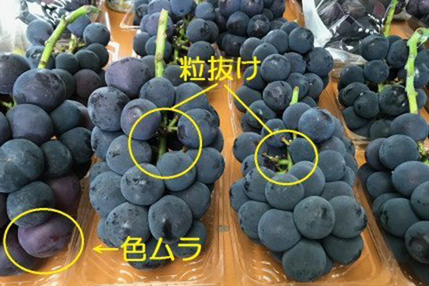 9月上旬から順次出荷 ※申込期日:10月3日(決済確認) ※沖縄・離島への発送不可 房の形、色ムラ(シャインマスカットの場合は粒の色が黄色い)、粒の抜け落ち、粒に傷があるなど見た目の問題があります。 訳あり。あと少しで贈答品にはむかないぶどうです。ご家庭で楽しむのにおススメのぶどうです。 ピオーネを中心に、巨峰、藤稔、シャインマスカット等4房前後を詰めて発送いたします。(種類は選べません) お気軽に楽しめるよう、家庭用ぶどうを用意しました。ぜひお試しください! ※お申し込み前に必ずご確認ください※ ・時期・天候等の理由で、ピオーネのみの発送になる場合もあります。 ・品種指定はできません、ご了承ください。 ・品質の都合上、沖縄・離島へ配送希望の方はお申し込みをお控えください。 ・配送日時指定はできません。 ・不在日がある場合は、お申し込み時に入力をお願いいたします。 ・不在などお受取人様の都合によりお届けができなかった場合は、再送いたしません。 ・万が一不作の場合は、同一寄附金額の別の品をお選びいただく場合がございます。 ※葡萄の特性上輸送中に粒がとれてしまう場合もございます。 商品説明 内容量 ぶどう4房前後(種類は選べません) 消費期限 収穫日より約7日ほど 配送温度帯 常温 配送不可エリア 沖縄県・離島 事業者 元気農園 ・ふるさと納税よくある質問はこちら ・寄付申込みのキャン