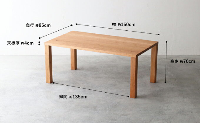 内容商品名:ダイニングテーブル DT-105-BC サイズ:W150×D85×H70cm 天板厚4cm 数量:1 生産地:静岡県藤枝市 素材: 天板/ブラックチェリー無垢材 脚/ブラックチェリー無垢材 7.5cm角脚 塗装:オイル仕上げ事業者秋山木工株式会社備考※画像はイメージです。 ※沖縄県・離島には配送できません。 ※お礼の品に椅子・撮影小物は含みません。 ※お礼の品はひと・・・