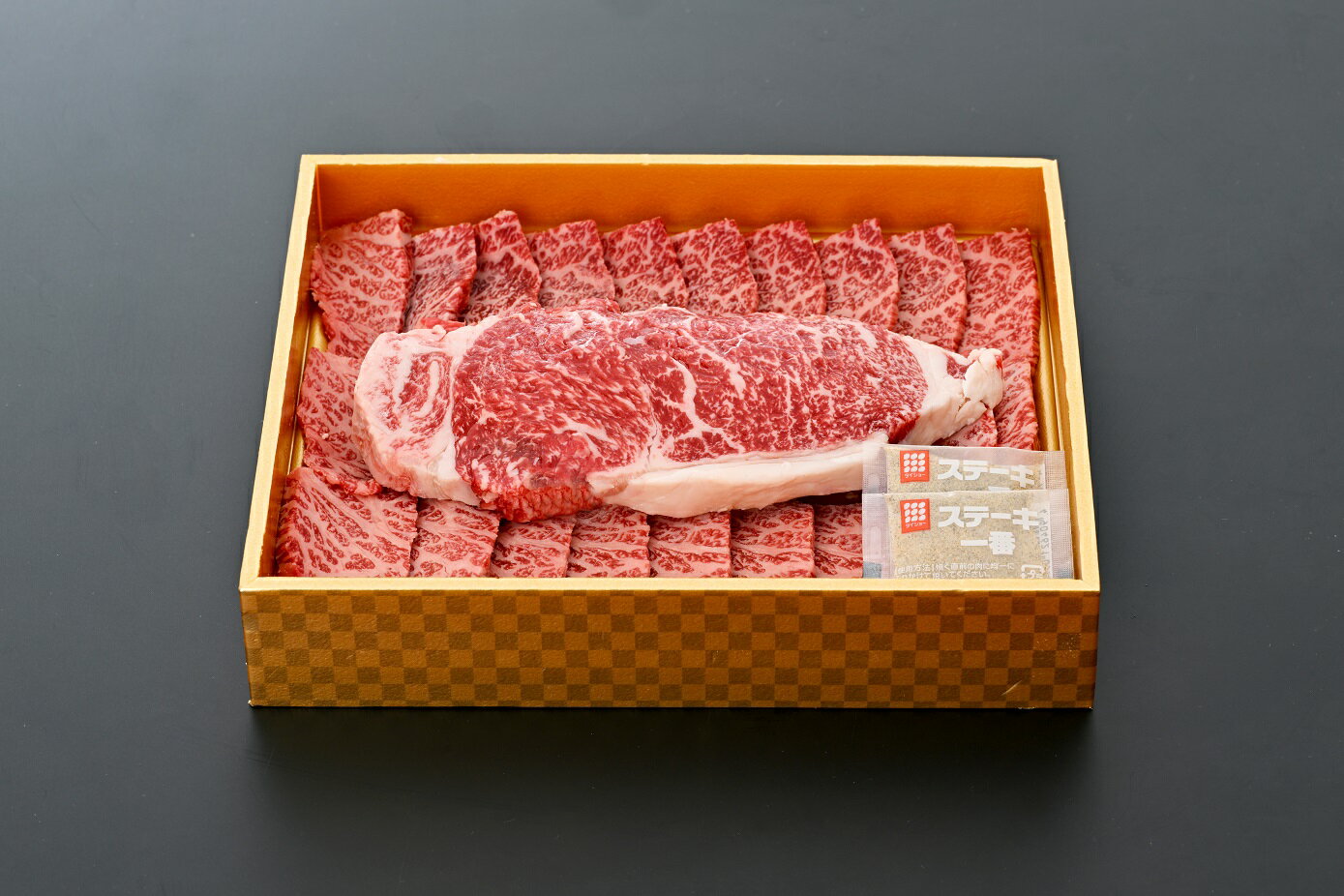 交雑牛は和牛と乳用牛を交配させたものです。 両方の良いところを受け継ぎ肉質は柔らかく和牛に近い甘味が特徴。 牛肉ロースステーキの美味しい焼き方 1.焼き始める30分〜1時間前に常温に戻す。 2.フォークで全体をぶすぶす刺し繊維質を立ち筋切りする。 3.焼く直前にお肉の両面に塩コショーを振る。 4.フライパンに油を入れ強火で白く煙が上がったらお肉投入、強火のまま表面1分程焼き、焼・・・