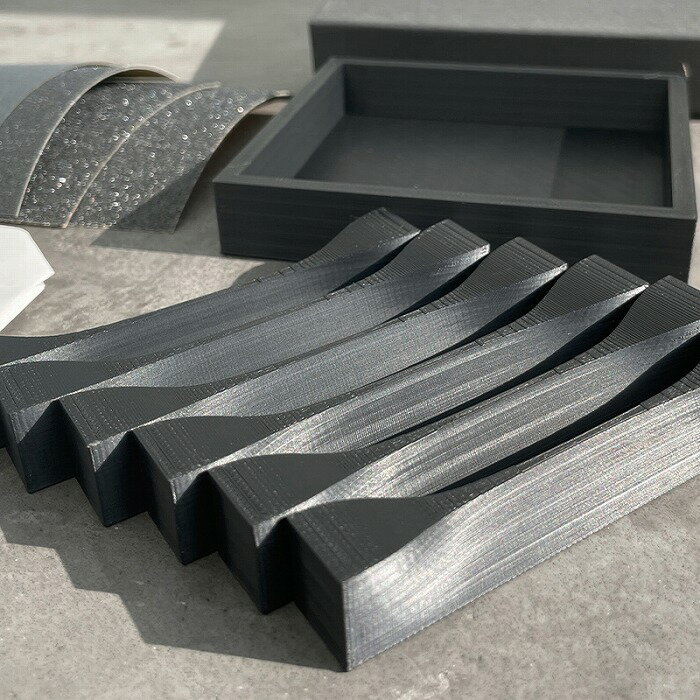 ・ふるさと納税よくある質問はこちら ・寄付申込みのキャンセル、返礼品の変更・返品はできません。あらかじめご了承ください。 ・ご要望を備考に記載頂いてもこちらでは対応いたしかねますので、何卒ご了承くださいませ。 ・寄付回数の制限は設けておりません。寄付をいただく度にお届けいたします。 商品詳細 名称 HITOTEMA〈SM〉自分で仕上げる フォーク+スプーン置き6個セット 商品概要 とても使いやすく美しい、そして軽いのでテーブルを傷つけない 箸置きです。和洋ともに合うデザイン 様々なお祝いに最適です6個セットなのでお客様のおもてなしの際にも便利です。造形機で約20時間かけて100総以上積層を重ねて出来上がった箸置きになります。 最後の表面仕上げを紙ヤスリを使い、ご自身でひと手間かけていただき完成いたします 仕上げ方により風合いや手触りが変化します。 曲面の美しさを感じながらそのひと時を楽しみ、愛着の一品を仕上げていただければと思います。 内容量・サイズ ・箸置き100mm×15mm×17mm 14g (同サイズ6個セット) ・ケース102mm×102mm×20mm 66g ・紙やすり 3種 計4枚 素材 PLA樹脂 PLA樹脂は、植物由来のプラスチック素材。 地球温暖化や石油資源枯渇などの環境意識の高まりがありそれに変わる存在として作られたのがPLA樹脂。 廃棄後の処理によって二酸