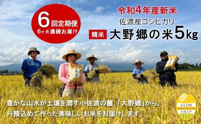 【ふるさと納税】【令和4年産】佐渡産こしひかり 大野郷の米(精米)5kg【6ヶ月連続お届け】 【定期便・ お米 白米 ライス ブランド米 新潟県産 減化学肥料 減農薬 佐渡市 認証米 安心 安全 ふっくら 粘り 旨味 おにぎり お弁当 】 お届け:2023年9月中旬頃まで・・・
