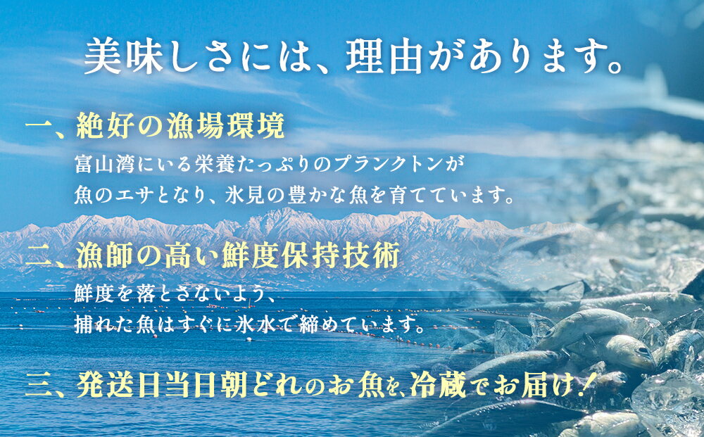 「天然のいけす」と呼ばれる富山湾。氷見漁港が誇る自慢の魚を、是非ご家庭でご賞味ください!