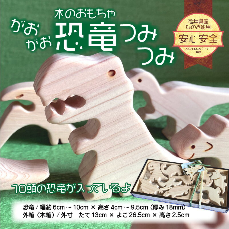 【ふるさと納税】がおがお恐竜つみつみ ~ 全部で10頭!~ 福井県産ひのきの木のおもちゃ ~ [B-06813]