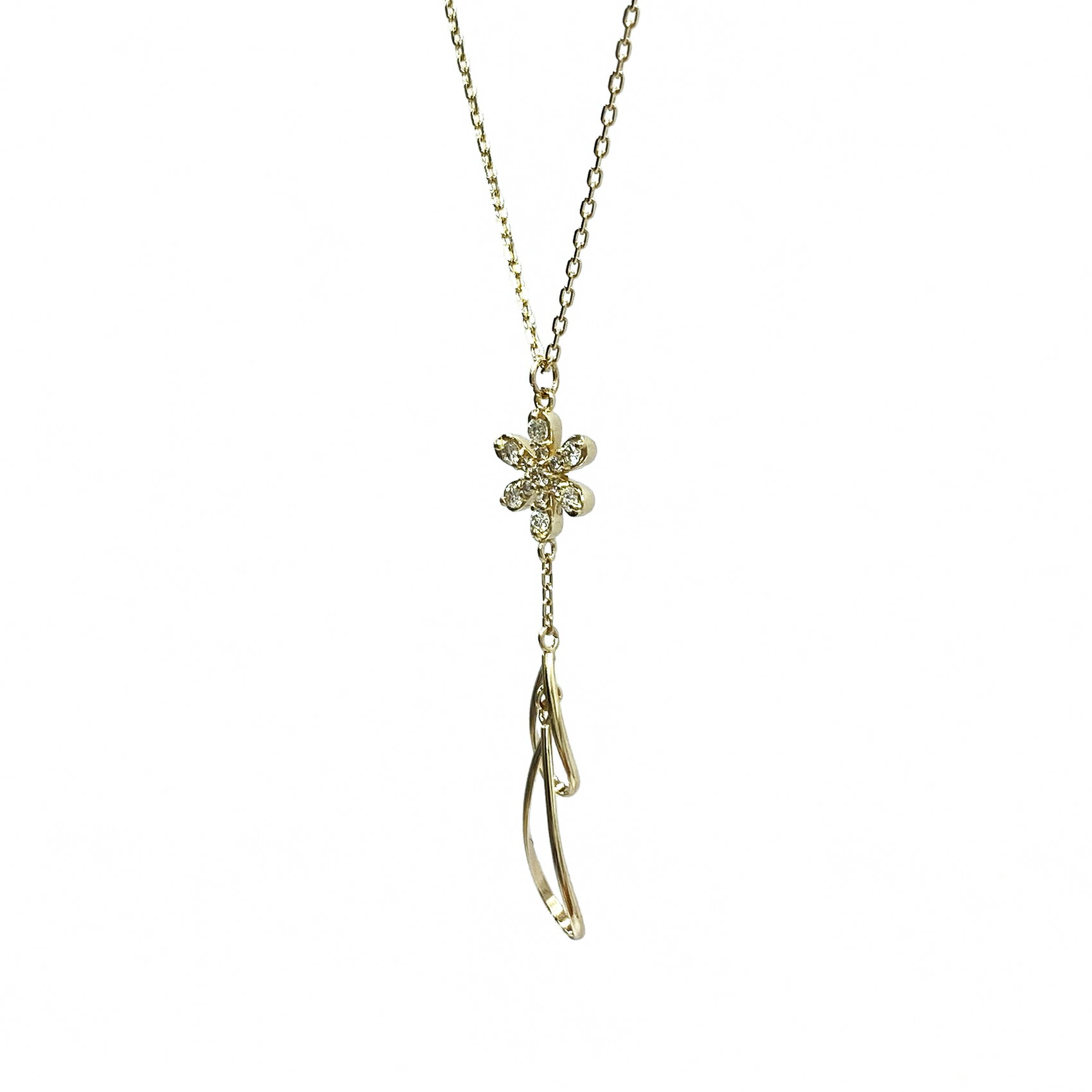 風に揺られているフラワーをイメージしたペンダントネックレス。 首周りをすっきりと華やかに見せてくれるY字タイプ。 カジュアルスタイルからフォーマルスタイルまでどんな装いにも馴染み、さりげない大人のお洒落を楽しめます。 首周りに少しゆとりができ、すっきりとした首のラインを演出できる長さの45cmチェーンを採用しています。 スライド仕様のチェーンのため、その日のファッションに合わせ・・・