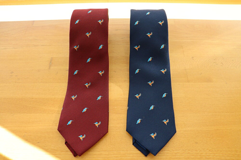 細やかなカワセミのモチーフが映えるネクタイです 自社生産、自社販売を行っています。 お客様と接することも多々あり、その声を商品作りに反映させています。 ネクタイは、普段から動物やいろいろな物、事をモチーフにデザインし生地を織っています。 ちょっと変わった柄になりがちですが、奇抜にならず普通に使えるように柄や色を工夫しています。 カワセミは20年ほど前、昼休・・・