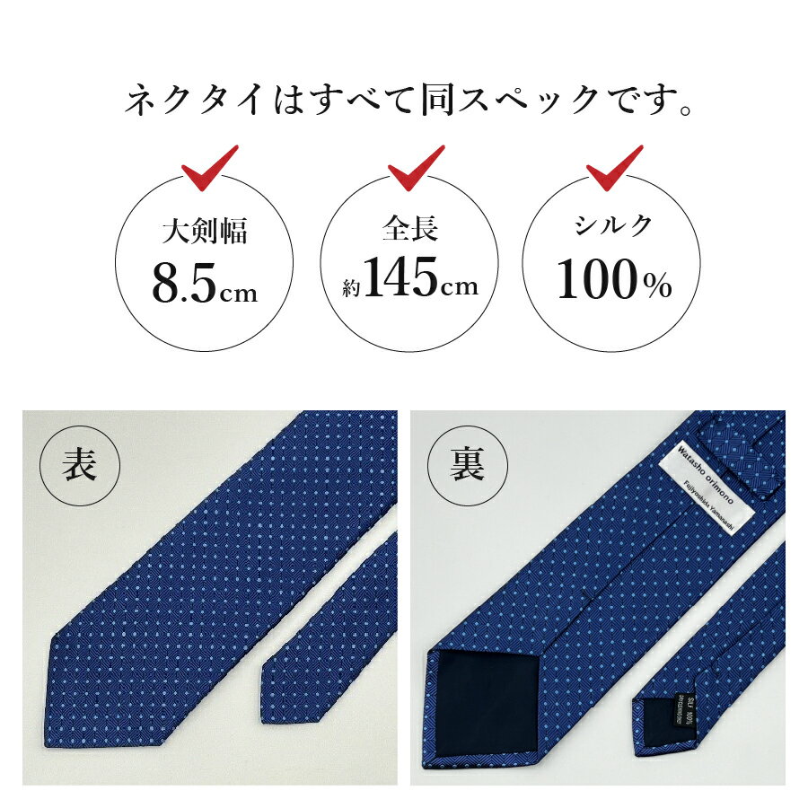 〜渡小織物Standard Seriesからお好きなネクタイ3本を選べます〜 渡小織物Standard Seriesは、自社直接販売と行商販売でのみ取り扱っているファクトリーブランドです。 工場での直接販売や行商販売で得たお客様の生の声や商品動向を参考に、幅広いビジネススタイルに対応できる色柄を取り揃えたブランドです。 ネクタイ生地に特化した無駄のない製織工程と、長年に渡り積み上げてきたデザインアーカイブを駆使し、限定生産体制をとることで高品質ながらお求めやすいネクタイに仕上げています。 小さな織物工場だからこそ生み出せる品質と価格にこだわったネクタイです。 好きなカラーやデザインに偏りがちなネクタイファッションですが、季節感を意識したり、お手持ちのスーツとのバランスを考えながら、安定のネクタイとチャレンジのネクタイをミックスさせた3本を楽しみながらお選び頂けます。 ■生産者の声 渡小織物は、富士山の麓で三代続くシルクネクタイ生地専門の織物工場です。 家族経営の小さな工場から長年技術を紡ぎ、その時代にあったトラッドなシルクネクタイ生地を織っています。 年々ネクタイがニッチな商品になっているからこそ、どれでもよいネクタイではなく、これが良いと選んで頂けるネクタイをご提案致します。 重厚な織と特徴的なデザインから生まれるフラッグシップブランド『TORAW』とビジネススタイルに特化し普段