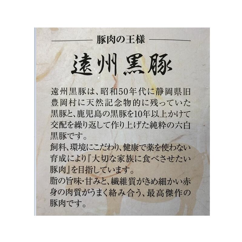 遠州黒豚肉100%使用無添加でていねいに焼き上げデミグラスソースで仕上げました。1個づつ真空冷凍してあります。 冷蔵庫内か常温で解凍してから鍋で中火で5分湯煎してお召し上がりください。 ※やけどには十分ご注意ください。 (栗山商店) 商品説明 名称 遠州黒豚ハンバーグセット 6個入り 産地 静岡県牧之原市 内容量 遠州黒豚ハンバーグセット 6個入り 消費期限 45日 保存方法 ・・・