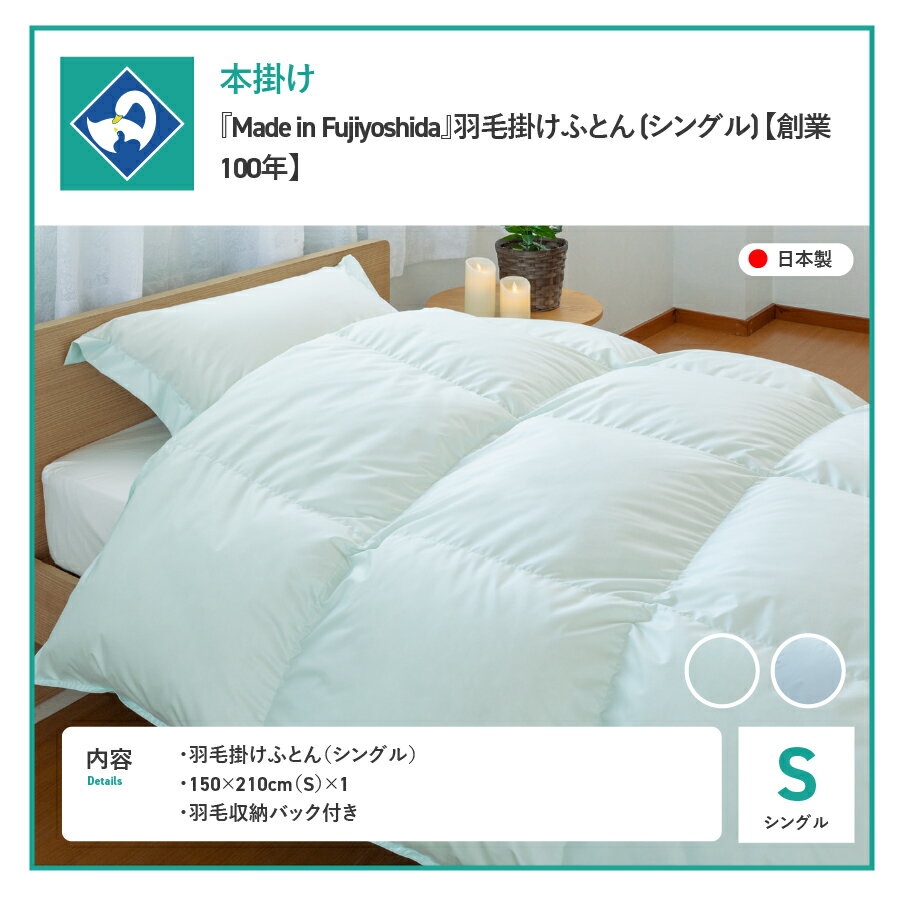 【ふるさと納税】 羽毛布団 掛け布団 シングル エクセルゴールド 日本製 羽毛2回洗浄 立体キルト ホワイトダックダウン85% コロナ支援 訳あり 『Made in Fujiyoshida』 150×210 グリーン ブルー 寝具 国産 ふるさと納税限定 創業100年 ダンボールハウス つながるふじよしだ・・・