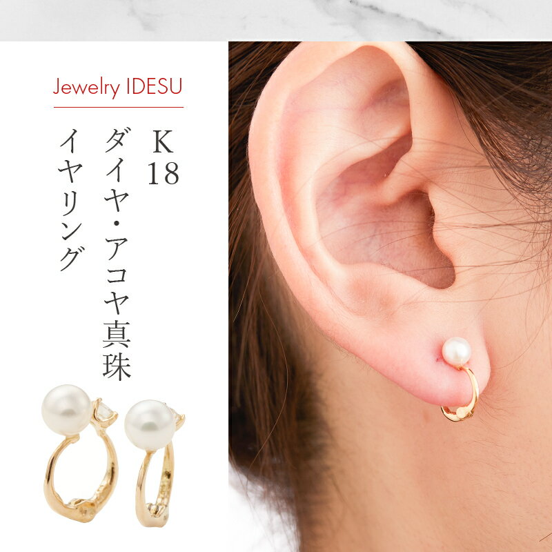 宝石、ジュエリー加工の街、甲府だからできる技術、特許取得済みのイヤリングになります。ご自身の耳に合わせて締め具合を調節でき、イヤリング独特の金具がみえないので付ければピアスのように見えてスタイリッシュに決まります。ダイヤモンドとアコヤ真珠を使用したシンプルなデザインですが、その日の服装やシーンに合わせてリバーシブルで使用出来る為とても使いかっての良い商品となっております。 名称 K18ダイヤ、アコヤ真珠イヤリング【EA-1189】 内容 ・イヤリング両耳用:1セット 原材料 ・K18 ・天然ダイヤモンド0.16ct ・天然アコヤ真珠:約5mm(2個) サイズ ・縦:約13.5mm ・横:約10mm 注意事項 ・本商品はイヤリング両耳用1セットです。 ・およそ免許証サイズの鑑別カードがついております。商品には金証を保証する刻印が入っております。 ・体質によりかゆみ・かぶれを生じる場合がございます。皮膚に異常を感じた場合はご使用をやめていただき専門医にご相談ください。 ・就寝時は変形や怪我の原因になることがありますので外すようお願い致します。 ・画像はイメージです。 提供元 ジュエリーアイデス ・ふるさと納税よくある質問はこちら ・寄付申込みのキャンセル、返礼品の変更・返品はできません。あらかじめご了承ください。入金確認後、注文内容確認画面の【注文者情報】に記載の住所に60日以内に発送