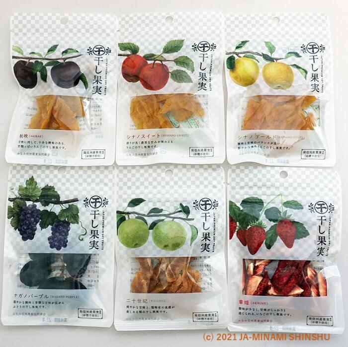 ・ふるさと納税よくある質問はこちら ・寄附申込みのキャンセル、返礼品の変更・返品はできません。あらかじめご了承ください。 ○名称:ドライフルーツよくばり6種セット ○内容量 ・ブドウ<ドライナガノパープル> 約20g ・いちご<ドライ章姫> 約16g ・なし<ドライ二十世紀> 約30g ・りんご<ドライシナノゴールド> 約30g ・りんご<ドライ秋映> 約30g ・りんご<ドライシナノスイート> 約30g ○保存方法:直射日光・高温多湿を避け、涼しいところで保存してください。(開封後は冷蔵庫又は冷凍庫にいれて保管し、お早めにお召し上がりください。) ○賞味期限:2023年4月 ○販売者:JAみなみ信州 ○詳細 【通年配送】 果実本来の美味しさを生かすため、砂糖を加えず仕上げています。 水分を残したセミドライ製法で、柔らかい中にも凝縮された自然の甘みと風味を引き立たせています。 南信州、長野県自慢の品種をドライフルーツとして加工し、なかでも人気の高い6種類のセットです。 ○返礼品の発送タイミング ご寄附日(注文日)の翌月にお届けします。 ※原料は全て南信州(飯田下伊那)産 ※ネコポス【ポスト投函】対応品 ※まれに種や果皮がある場合がございます ※商品に白い粉、茶色のシミがつくことがありますが、原材料由来のものです。品質や食味には問題ありません。ドライフルーツよくばり6種セット 「ふる