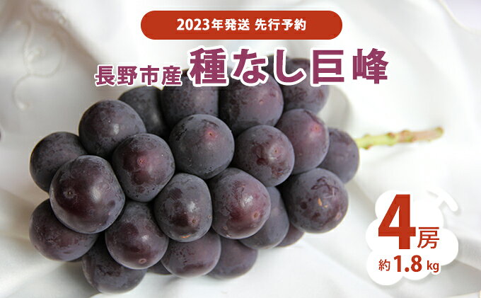 【ふるさと納税】先行予約 長野市産 種なし巨峰4房(約1.8kg)2023年発送 【 果物 ぶどう フルーツ デザート 食後 おやつ 長野県産 信州 採れたて 新鮮 当日発送 】 お届け:2023年9月上旬〜中旬・・・