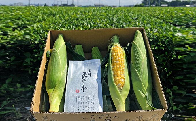 【ふるさと納税】大人気!しんちゃん農園の甘〜いとうもろこし甘々娘と新茶のセット(とうもろこし8〜9本入り、新茶1P) 【 野菜 新鮮 高糖度 甘い 柔らかい 子供 おやつ 獲れたて 美味しい 緑茶 飲料類 セット 】 お届け:2023年6月1日〜25日・・・