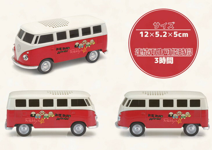 七宗町マスコットの五つ子レッキーちゃん仕様のフォルクスワーゲンT1バス Bluetoothスピーカーです。スマホやパソコンから音が飛ばせるヨ! 手のひらにも乗るカワイイサイズ。お部屋のインテリアとしても最高なんです♪ 名称 ワーゲンバスT1Bluetoothスピーカー(七宗オリジナル) 内容 サイズ 12×5.2×5cm 重量 108g Aux 入力端子 連続再生可能時間 3時・・・