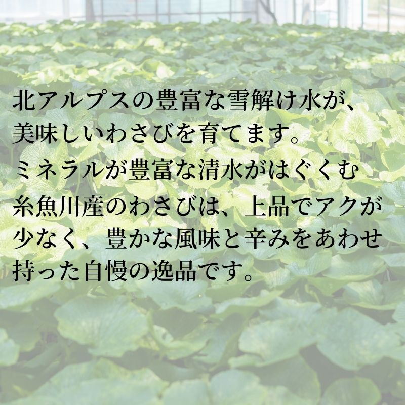 北アルプスの湧水に育まれ、糸魚川で穫れたおいしい天然生わさび。 すっと抜けるさわやかな香りと辛味の中にあるまろやかな甘み。 「真妻種」はわさびの中でも最高峰と言われていますが、栽培が難しく生育に時間がかかることから生産量が限られる希少種です。 約2年かけて育てられた稀少な真妻本わさびを2本セットでお届けします。 商品概要 容量 2本(1本あたり75g前後) ※わさびの重量は細心・・・