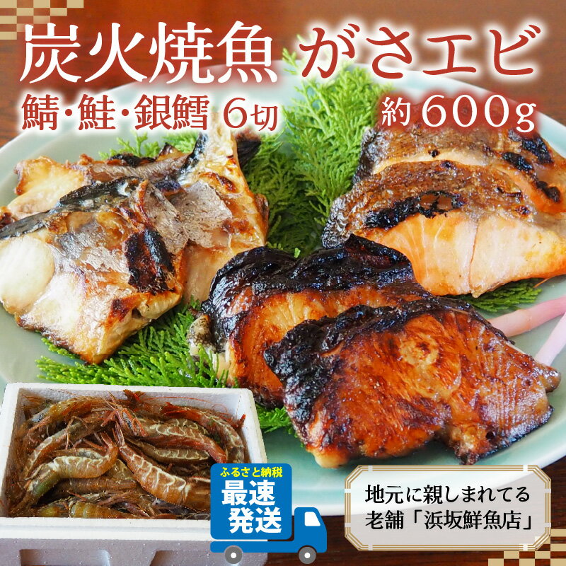 最初は、曾祖母と祖母二人で魚を、籠や押し車などで持って売り歩く行商人『ぼてさん』をしていたのが始まりで、三国港のそばにあるえちぜん鉄道の三国港駅前の近くに鮮魚店を開き、今の社長で四代目。 今、国産の炭を確保することが大変な中、魚は絶対に国産の炭で焼くことにこだわっています。 何年か前までは「おばあちゃんが焼いているお店」で知られていましたが今ではその息子が意志を継ぎ、日々頑張って焼いています。 どこか懐かしい昔ながらの魚屋さんが、炭火でじっくりとふっくら焼き上げた魚と、福井県三国港で水揚げされたあと急速冷凍したがさエビとのセットです。 焼き魚は注文を受けてから焼き上げた魚をその日のうちに1切れずつ真空パックして急速冷凍しており、レンジで温めるだけでお手軽にお召し上がれます。 鯖は絶妙な塩加減で、当店1の人気です。 このまま召し上がるのもよろしいですが、焼き鯖寿司などにアレンジするのも如何でしょうか。 鮭は脂が乗っていますので最高に美味しいです。 こちらもちょっと贅沢なお茶漬けなどに如何でしょうか。 銀鱈は当店独自の配合のたれにつけこんで焼き上げた魚です。 脂がかなりのっていますし、旨みもあり、身もほぐれやすく食べやすいので、お子様からお年寄りの方など幅広く召し上がって頂いております。 がさえびは鮮度が落ちるのが早いのでなかなか市場に出回らないことで『幻のエビ』とも言われており、ビジ