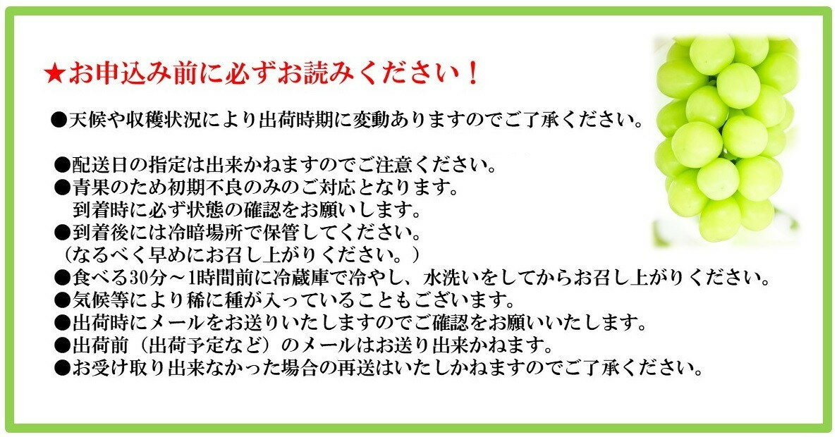 商品説明 ●申込期日:7/31まで ●発送期日:8月上旬~9月上旬予定 ※沖縄(本島除く)・離島は配送不可 JAふえふきからのおすすめの逸品は、巨峰です。 美しい紫黒色で、高い糖度としっかりとした酸味は、ぶどうの大様と呼ぶにふさわしい濃厚な食味です。 栄養価も高くビタミン、ミネラル、ポリフェノールを豊富に含んでいます。 種がないため、女性やお子様にも人気の品種です。 名称 JAふえふき 露地種無し巨峰2房(約1.0kg) 010-006 内容量 2房 約1.0kg(常温発送) ※沖縄(本島除く)・離島は配送不可 賞味期限 生ものですのでお早目にお召し上がりください 提供元 笛吹農業協同組合(JAふえふき) 注意事項 ●沖縄(本島を除く)・離島には配送できません。 ●発送は常温になります。 ●商品の性質上、脱粒する事がありますが、品質に問題はありません。 ●天候により写真と色味が多少違う場合がございます。味には問題ございません。 ●天候等により発送時期に変動がありますのでご了承ください。 ●天候により稀に種が入る場合がありますので予めご了承ください。 ●配送日の指定はできかねますが、不在日がある場合は、配送に関する連絡事項にご記載ください。また、お申込み後であればメールにてご連絡ください。 ●2口以上お申込みの場合は、配送日が重なってしまう場合もあります。 ●配送伝票のご依頼主は贈答