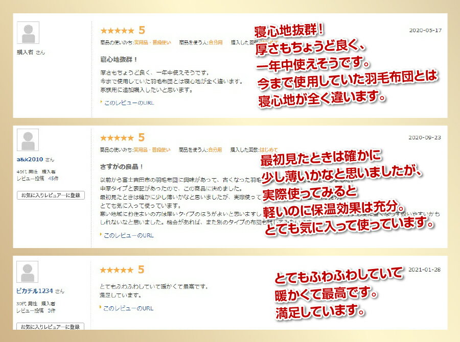 清潔設計!取り扱いの便利な中厚タイプの羽毛布団です
