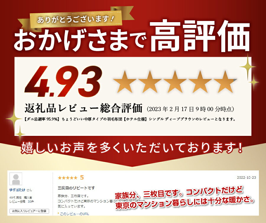 【ふるさと納税】 羽毛布団 掛け布団 中厚 シングル 日本製 ディープブラウン【ダニ忌避率95.9%】【ホテル仕様】 綿100% サテン ストライプ 抗菌 防臭 防ダニ 寝具 布団 国産・・・