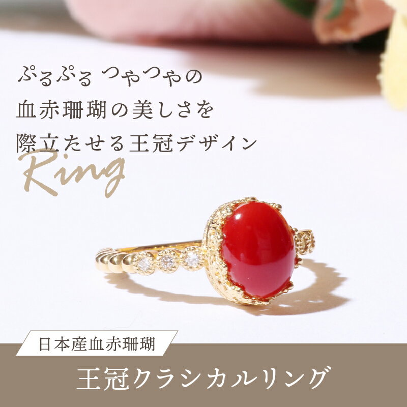 日本の宝、日本産血赤珊瑚を甲府の職人が王冠クラシカルリングに仕上げました。