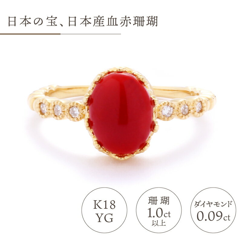【ふるさと納税】リング 指輪 レディース ジュエリー アクセサリー クラシカルリング K18 イエローゴールド 日本産 赤珊瑚 1.00ct ダイヤモンド 0.09ct ギフト プレゼント ジュエリーケース付 鑑別書付 k076-001・・・